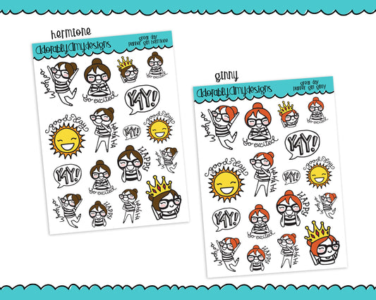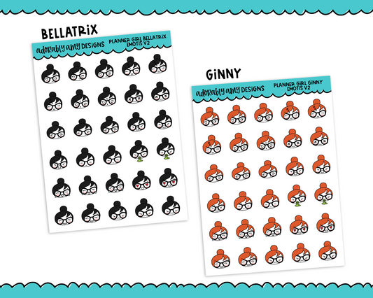 Doodled Planner Girls Character Stickers Emotis V2 Planner Stickers for any Planner or Insert