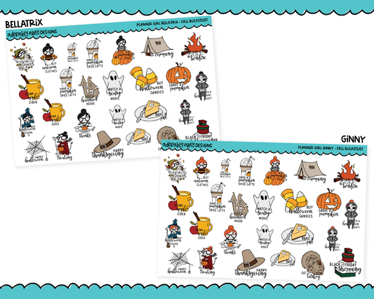 Doodled Planner Girls Character Stickers Fall Bucket List Decoration Planner Stickers for any Planner or Insert