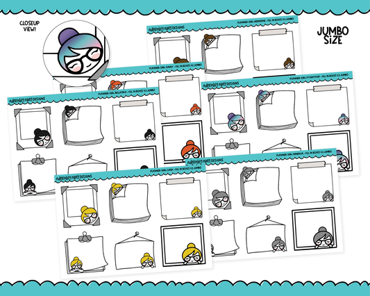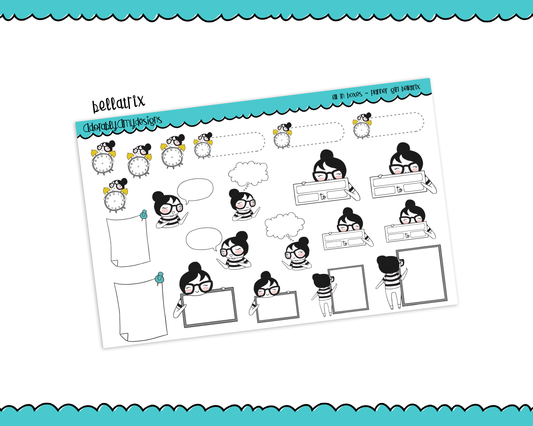 Doodled Planner Girls Character Stickers Half & Quarter Boxes 2 Sizes Planner Stickers for any Planner or Insert