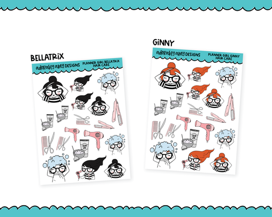 Doodled Planner Girls Character Stickers Haircare Decoration Planner Stickers for any Planner or Insert
