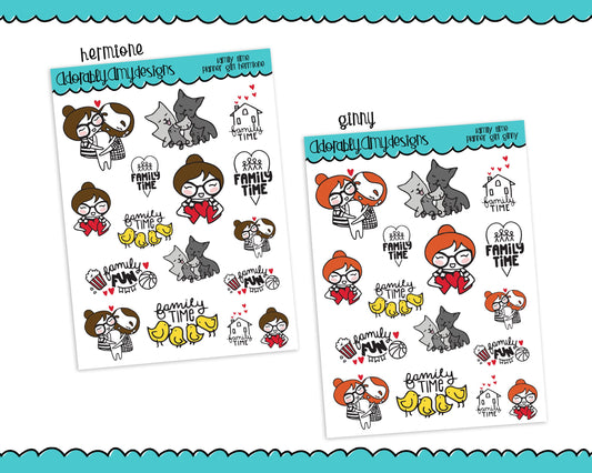 Doodled Planner Girls Character Stickers Family Time Family Love Planner Stickers for any Planner or Insert