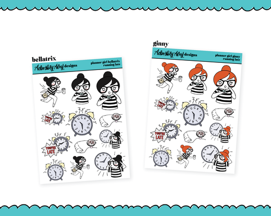Doodled Planner Girls Character Stickers Running Late Decorative Planner Stickers for any Planner or Insert