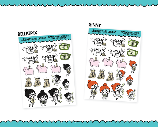 Doodled Planner Girls Character Stickers Pay Day Saving Money Decorative Planner Stickers for any Planner or Insert