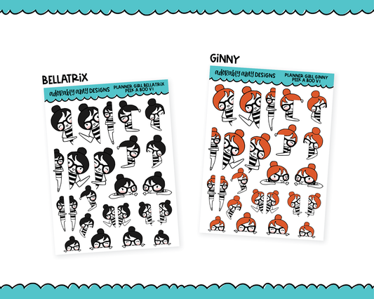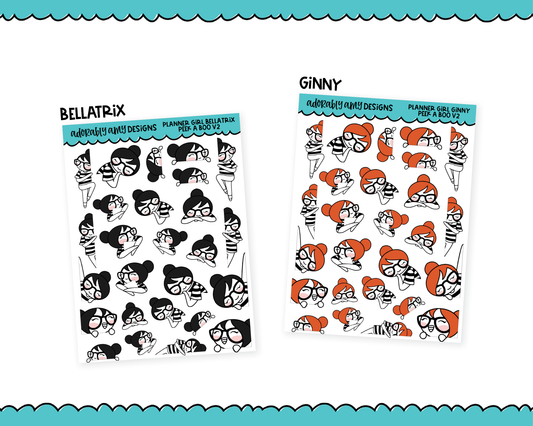 Doodled Planner Girls Character Stickers Peek a Boo V2 Edge Decoration Planner Stickers for any Planner or Insert