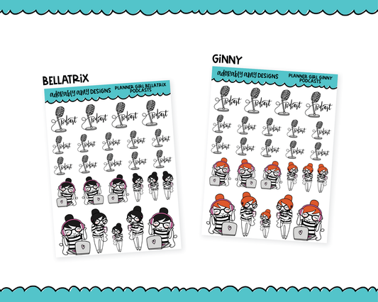 Doodled Planner Girls Character Stickers Podcasts Decorative Planner Stickers for any Planner or Insert