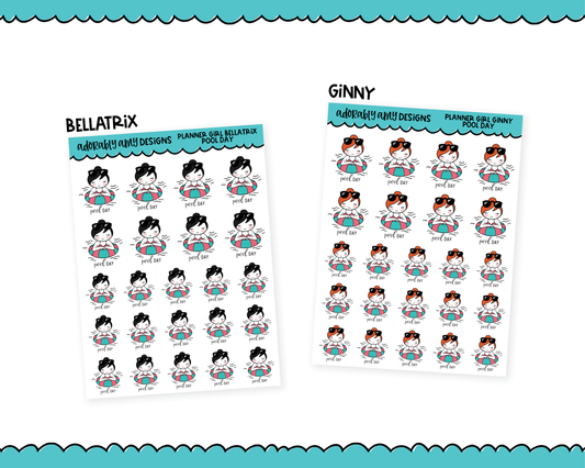Doodled Planner Girls Character Stickers Pool Time Decoration Planner Stickers for any Planner or Insert