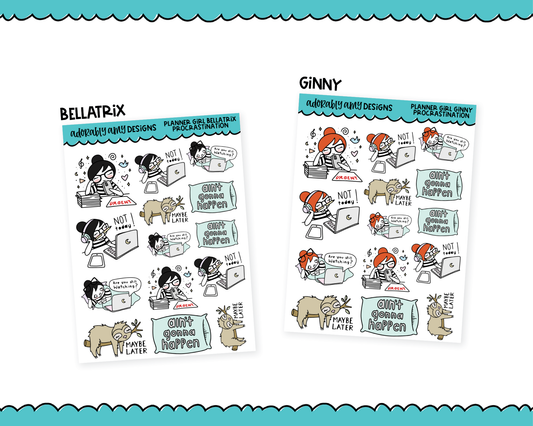 Doodled Planner Girls Character Stickers Procrastination Decoration Planner Stickers for any Planner or Insert