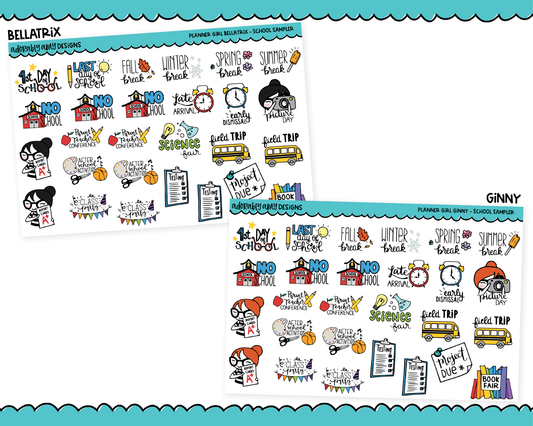 Doodled Planner Girls Character Stickers School Sampler Decoration Planner Stickers for any Planner or Insert