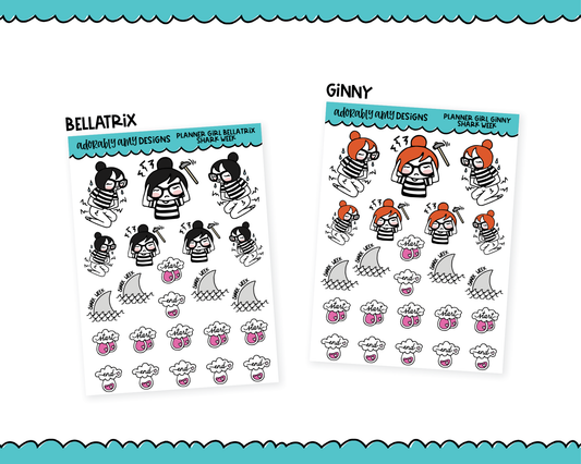 Doodled Planner Girls Character Stickers Shark Week Decorative Planner Stickers for any Planner or Insert