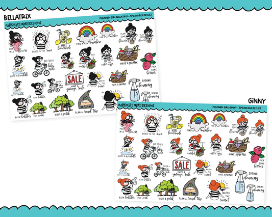 Doodled Planner Girls Character Stickers Spring Bucket List Decoration Planner Stickers for any Planner or Insert
