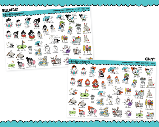 Doodled Planner Girls Character Stickers Summer Bucket List Decoration Planner Stickers for any Planner or Insert