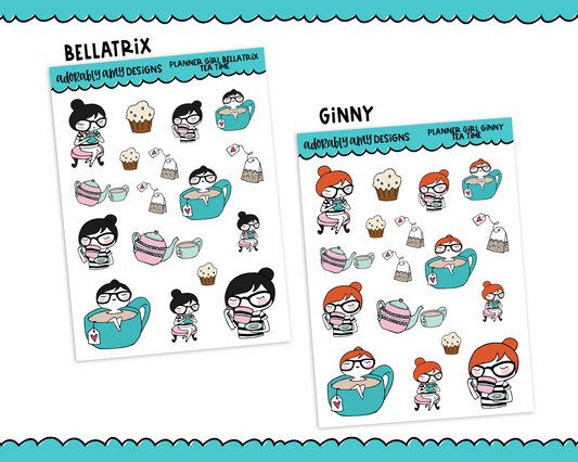 Doodled Planner Girls Character Stickers Tea Time Planner Stickers for any Planner or Insert