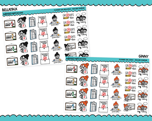 Doodled Planner Girls Character Stickers Teacher Sampler Decoration Planner Stickers for any Planner or Insert