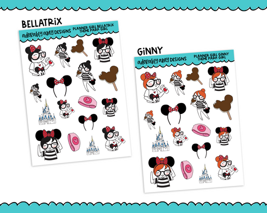Doodled Planner Girls Character Stickers Theme Park Girl Decoration Planner Stickers for any Planner or Insert
