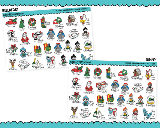 Doodled Planner Girls Character Stickers Winter Bucket List Decoration Planner Stickers for any Planner or Insert