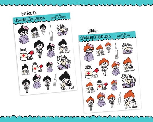 Doodled Planner Girls Character Stickers Sick Day So Sick Planner Stickers for any Planner or Insert
