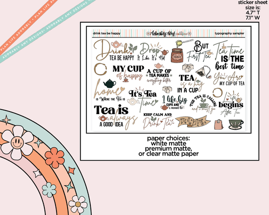 Drink Tea Be Happy Deco Typography Sampler Planner Stickers