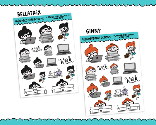 Doodled Planner Girls Character Stickers Work Time Working and Schedule Reminder Planner Stickers for any Planner or Insert