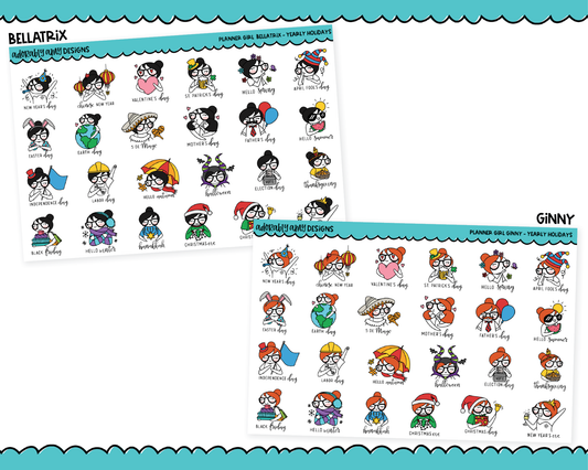 Doodled Planner Girls Character Stickers Yearly Holidays Decoration Planner Stickers for any Planner or Insert