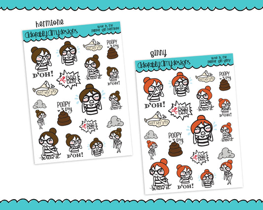 Doodled Planner Girls Character Stickers Woe is Me Bad Day Planner Stickers for any Planner or Insert