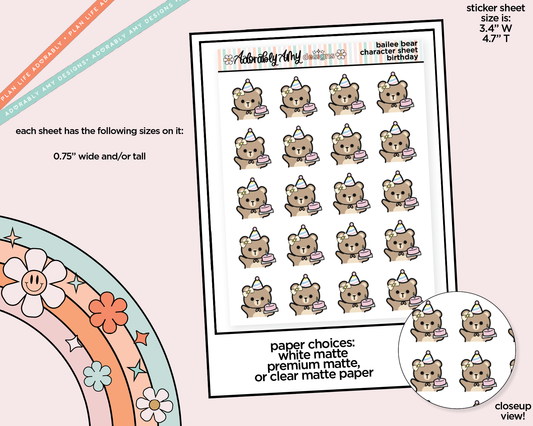 Bailee Bear Birthday Decoration Planner Stickers for any Planner or Insert