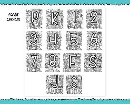 Foiled School Grade Doodle Stickers Pre-K to Senior Planner Stickers for any Planner or Insert