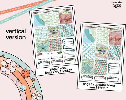 Vertical States Collection - California Dreams are Made of Sunshine Sticker Kit for Vertical Standard Size Planners or Insert