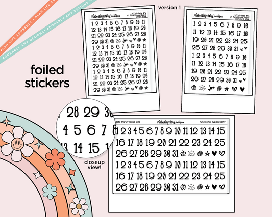 Foiled 2026 Date Numbers (kisscut) Stickers for any Planner or Insert