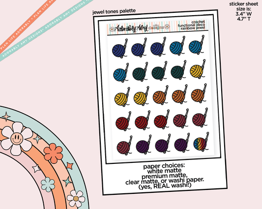 Rainbow Crochet Hook and Yarn Ball Doodled Icon Stickers