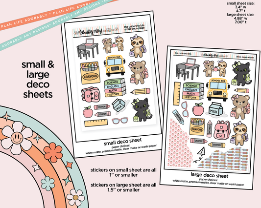 Mini B6 The Cutie Trio Back to School Planner Sticker Kit sized for ANY Vertical Insert