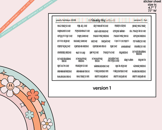 Yearly Holidays 2026 Planner Stickers for any Planner or Insert