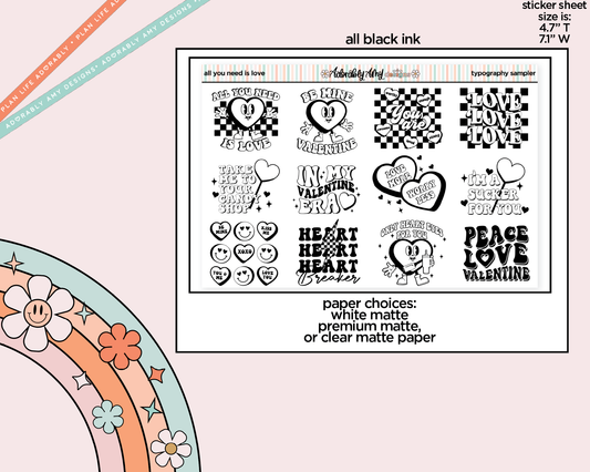 All You Need is Love Deco Typography Sampler Planner Stickers