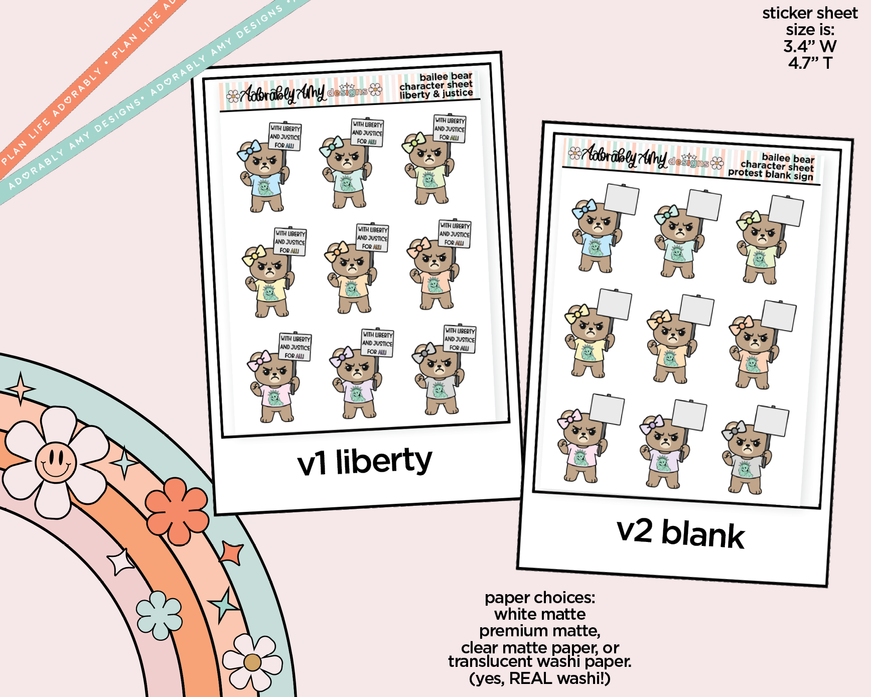 Bailee Bear Protestor - Liberty and Just Decoration Planner Stickers