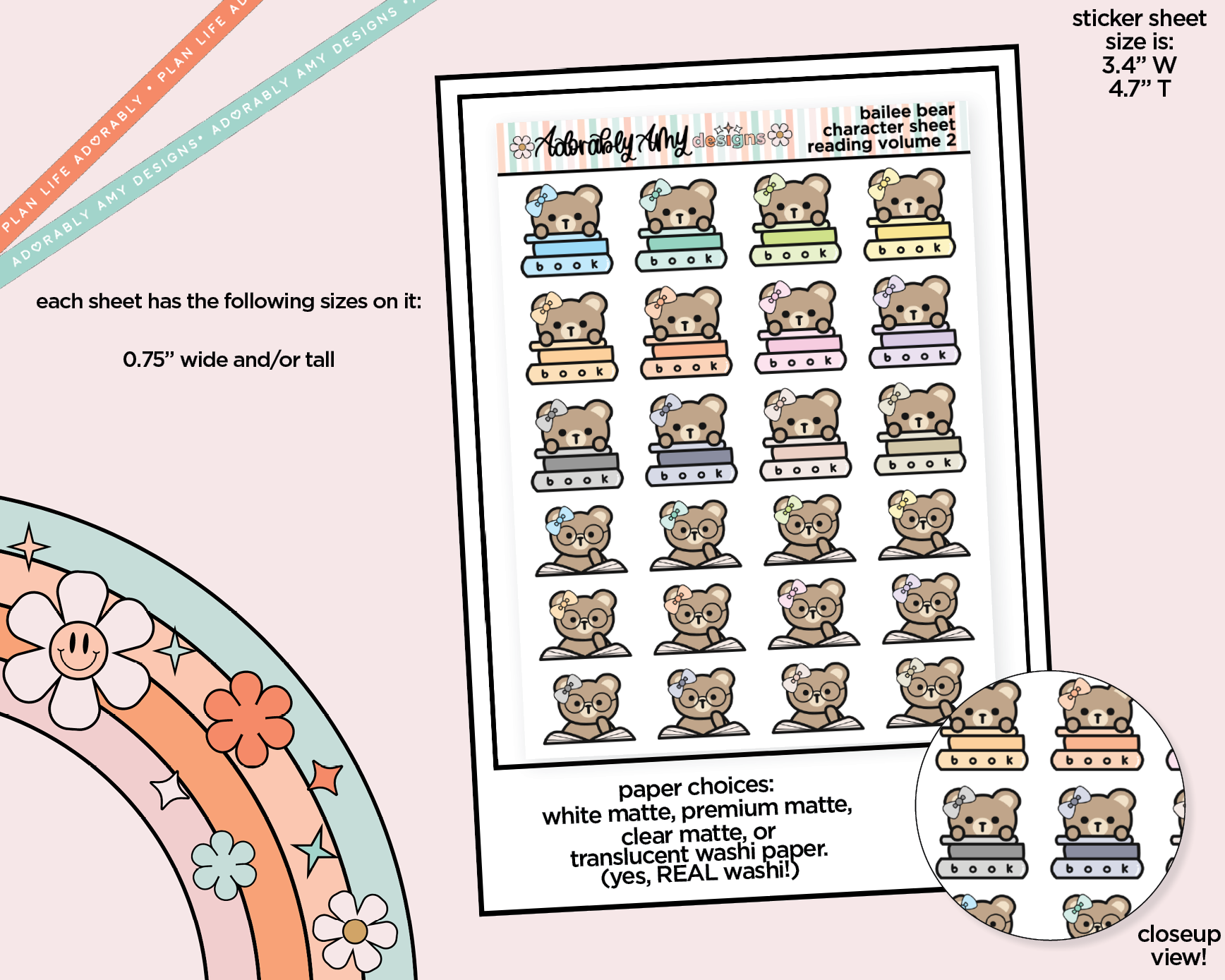 Bailee Bear Reading Volume 2 Decoration Planner Stickers for any Planner or Insert