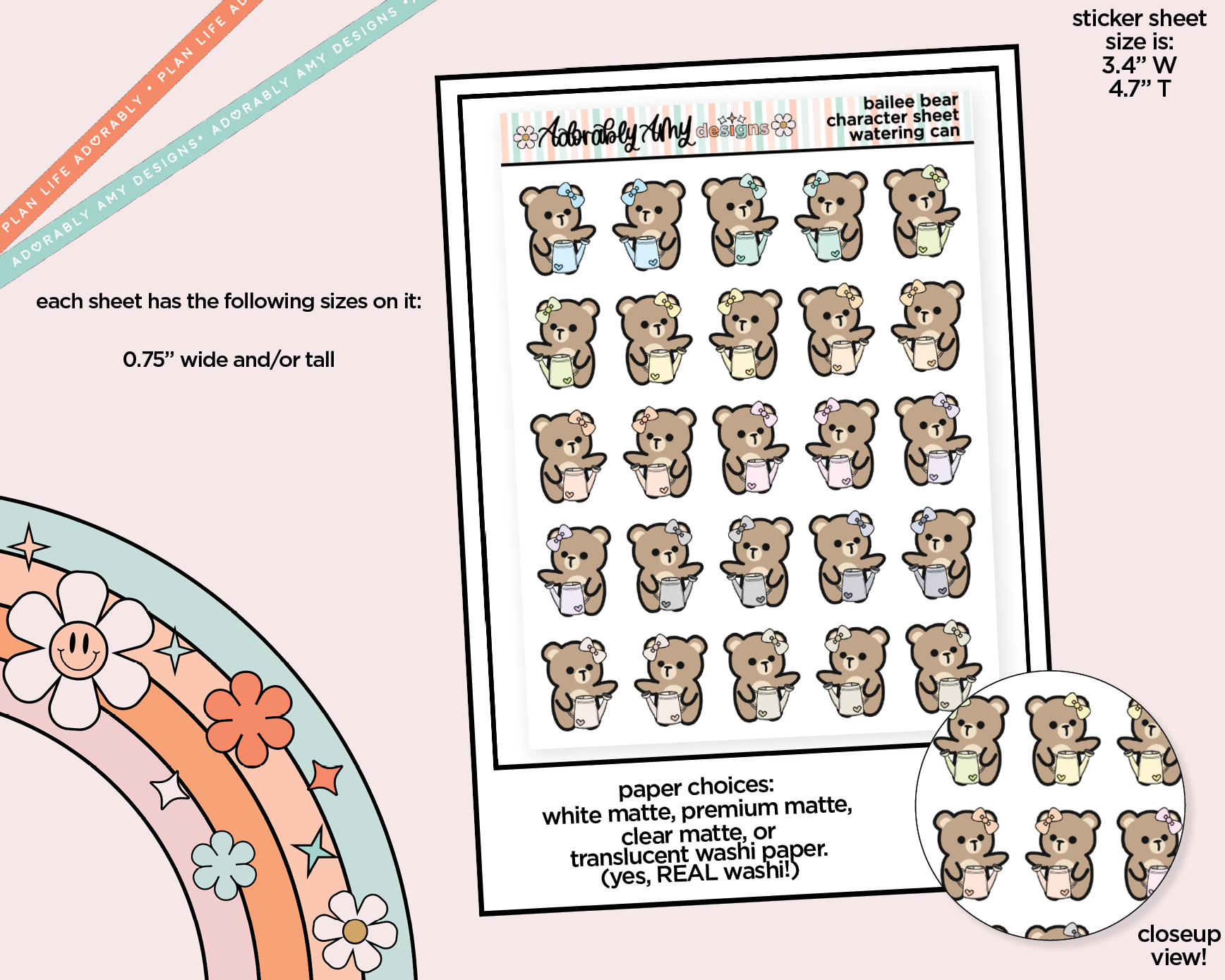 Bailee Bear Watering Can - Water Flowers Decoration Planner Stickers for any Planner or Insert