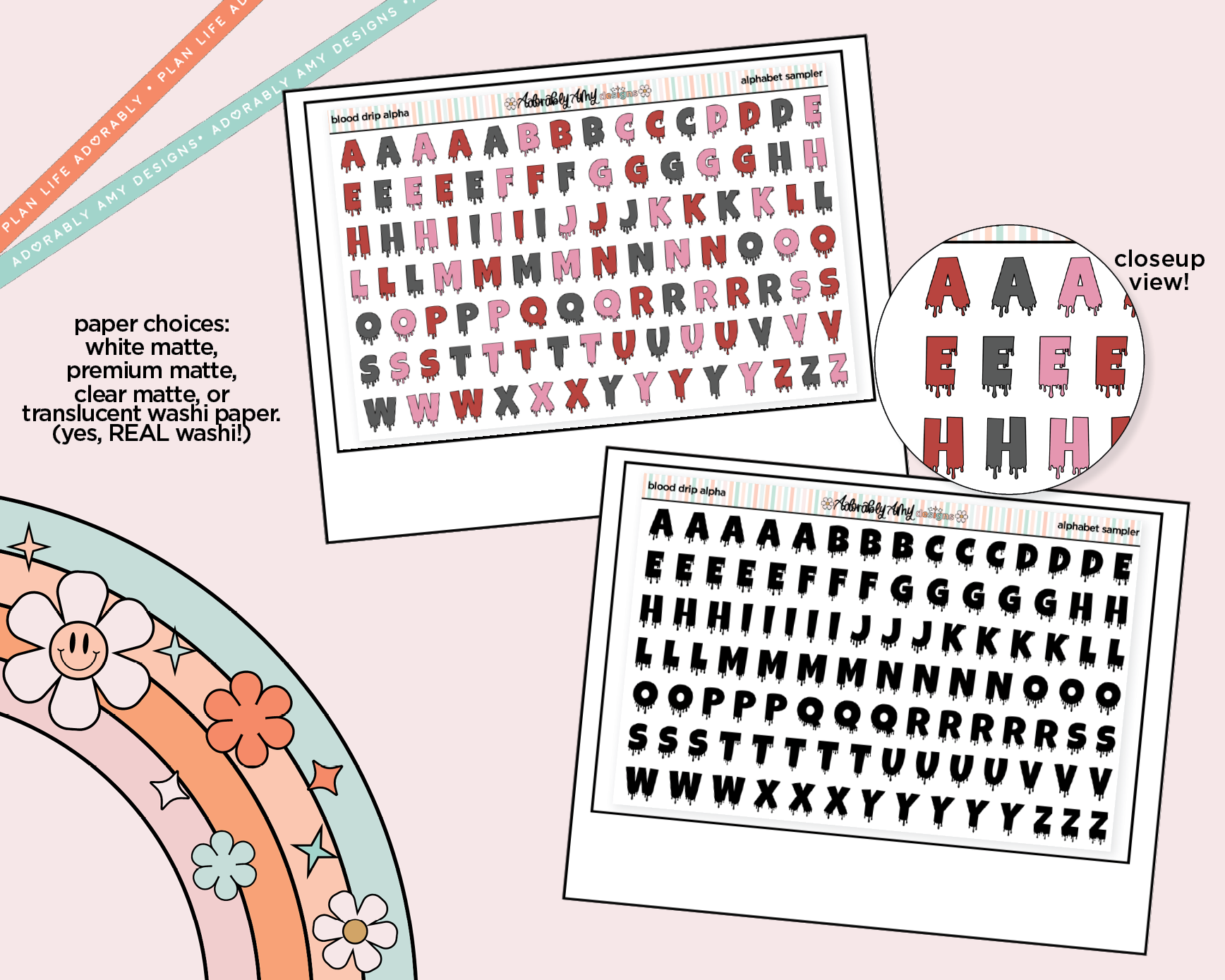 Blood Drip Alphabet Stickers Deco Typography Sampler Planner Stickers