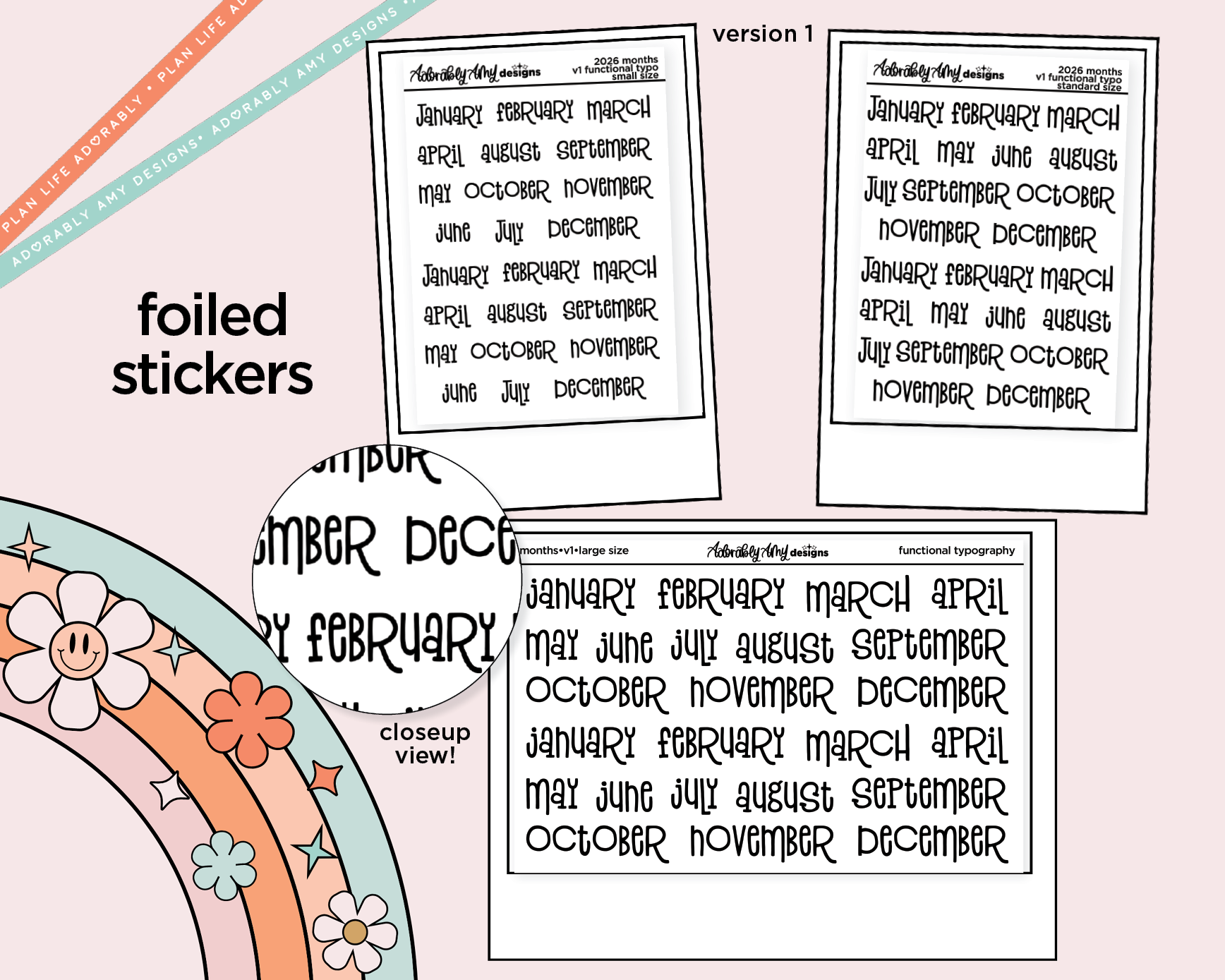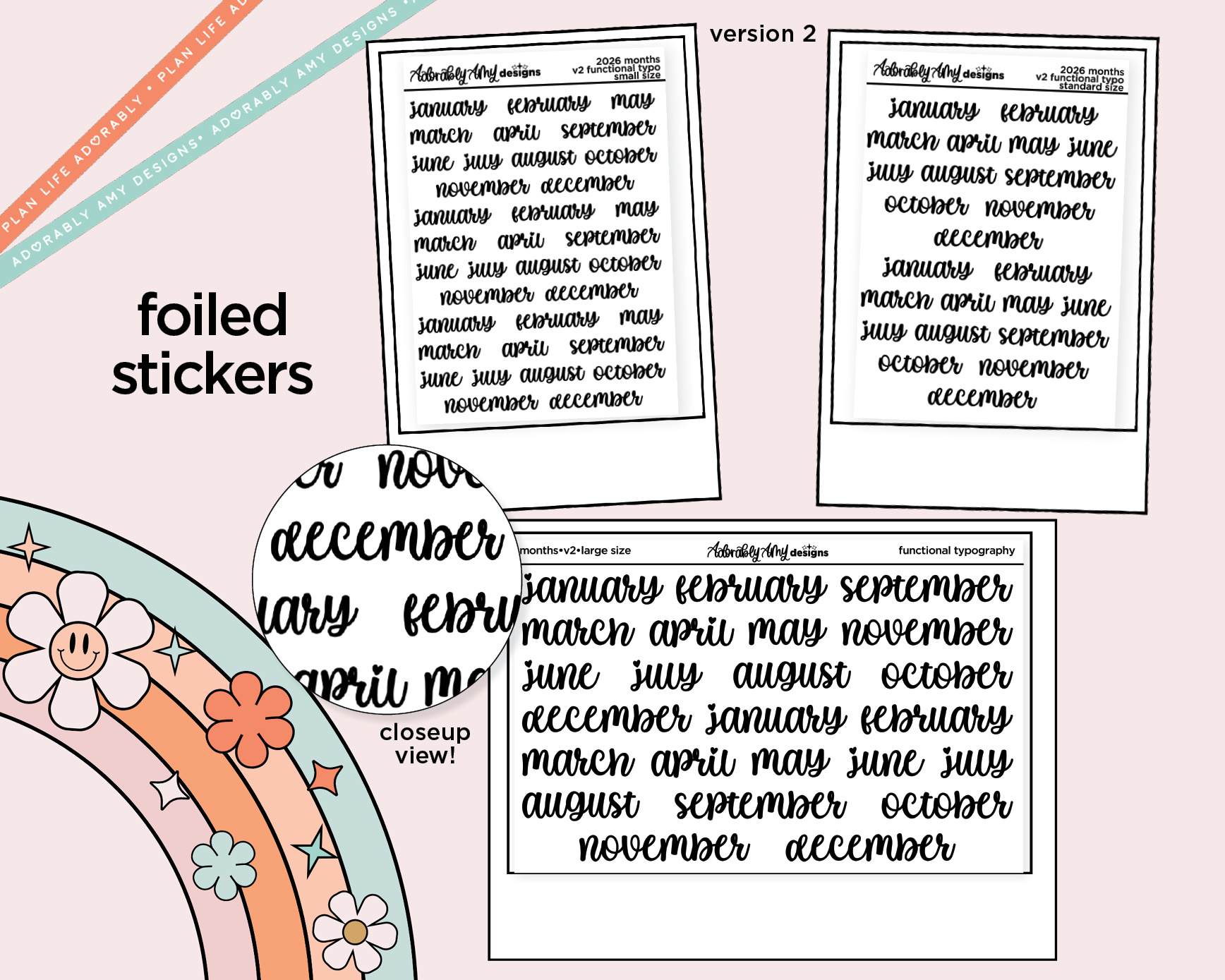 Foiled 2026 Months of the Year Stickers for any Planner or Insert