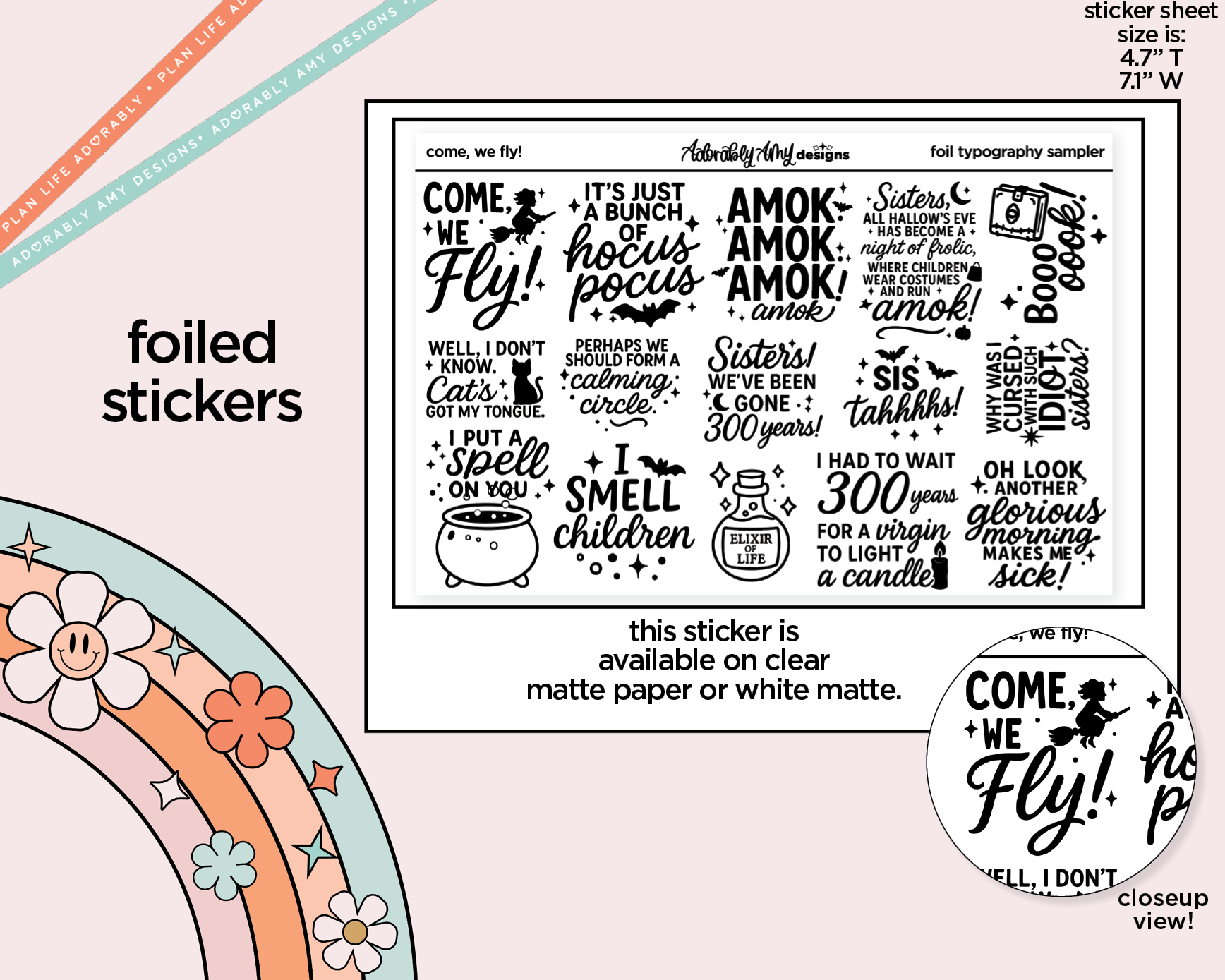 Foiled Come, We Fly! Sanderson Sisters Deco Typography Sampler Planner Stickers