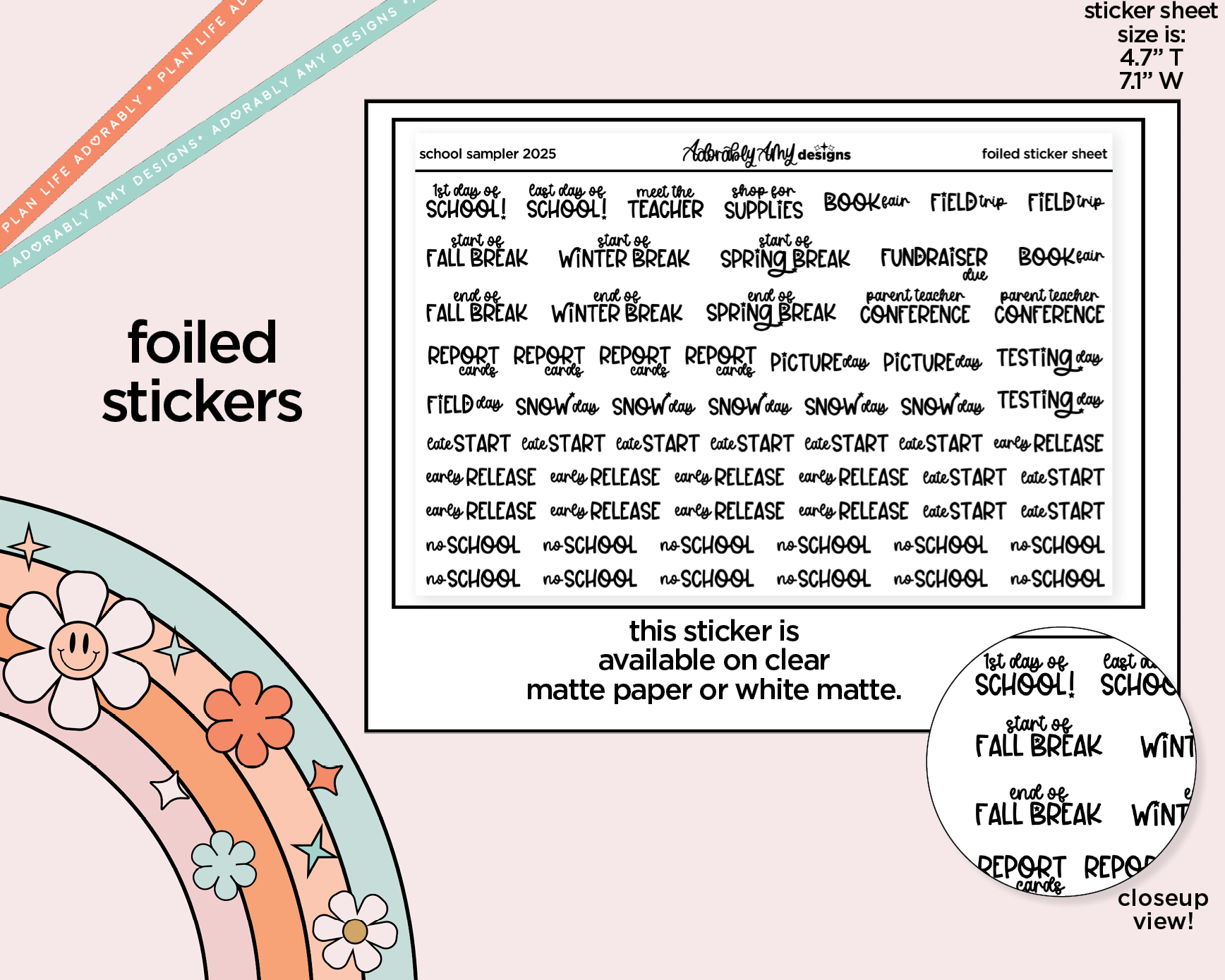 Foiled Stickers are printed on a white matte paper that works with ALL pens or a beautiful crystal clear glossy and are then kiss-cut for easy removal. They are a handmade product so can vary in small amounts from set to set. Additionally, please note that colors may vary from monitor to monitor.