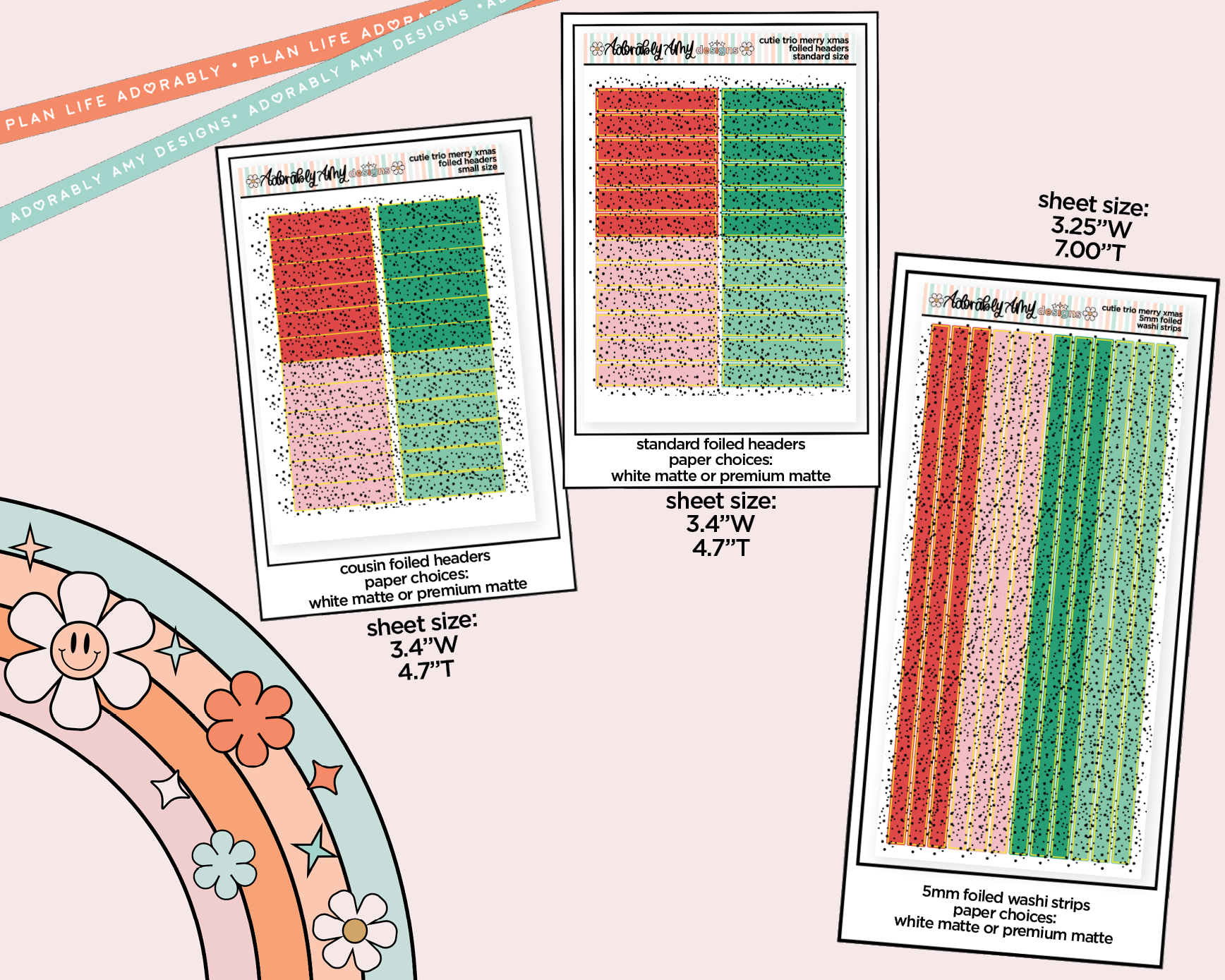 Foiled The Cutie Trio Merry Christmas Headers or Long Strips Planner Stickers