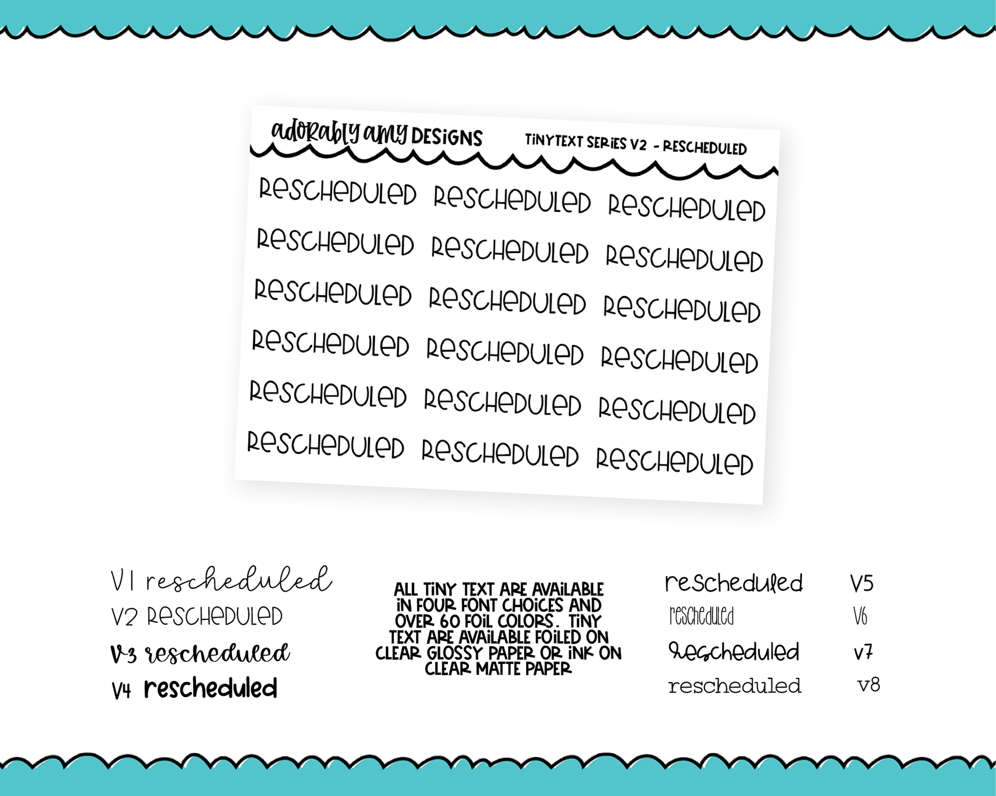 Foiled Tiny Text Series - Rescheduled Checklist Size Planner Stickers for any Planner or Insert