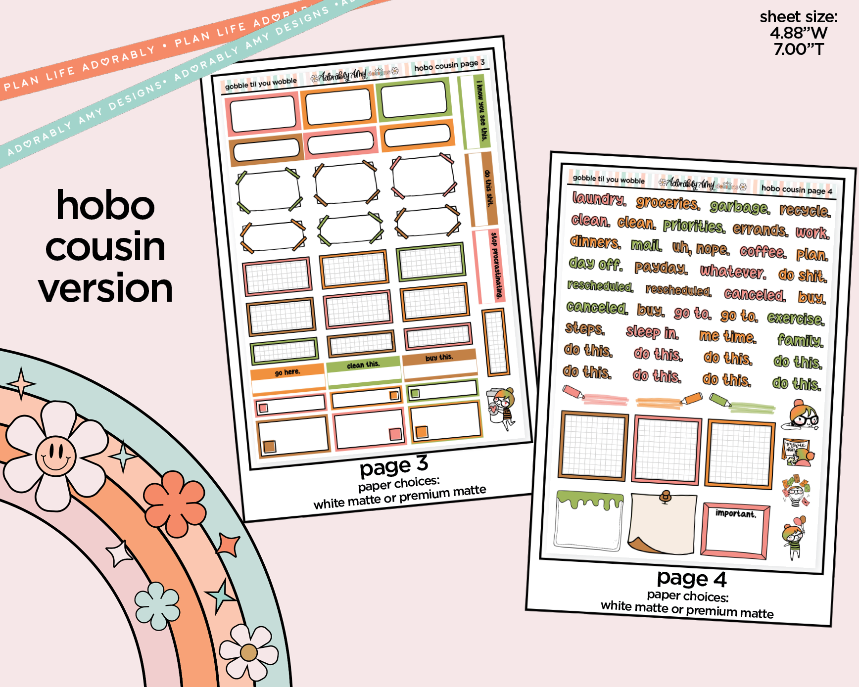 Hobonichi Cousin Weekly Gobble Til You Wobble Planner Sticker Kit for Hobo Cousin or Similar Planners
