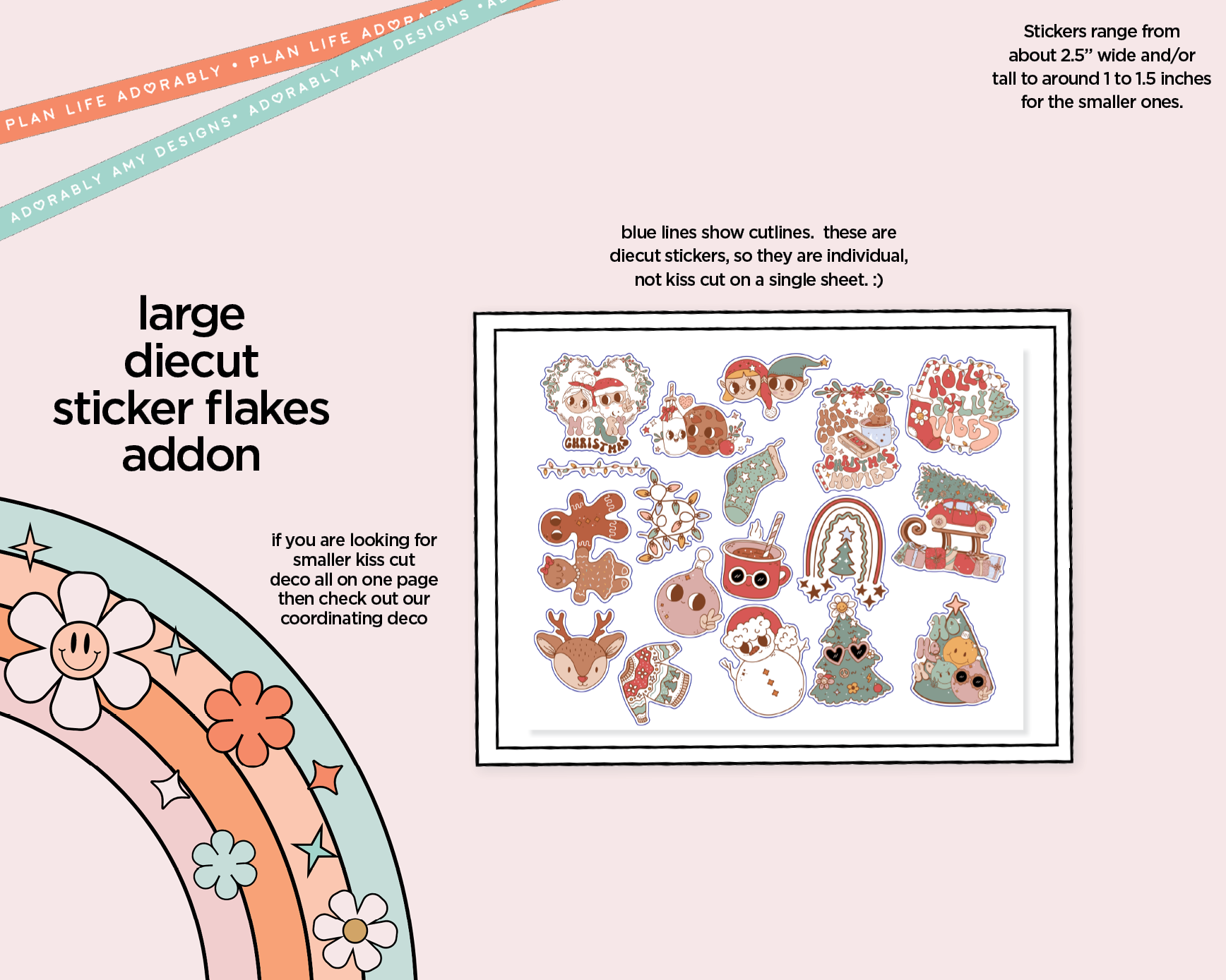 This merry mix of cheerful colors and playful holiday designs captures the magic of Christmas in every spread. From whimsical Santas to cozy details, it’s the perfect way to fill your planner with warmth, sparkle, and that signature Adorably Amy charm.
