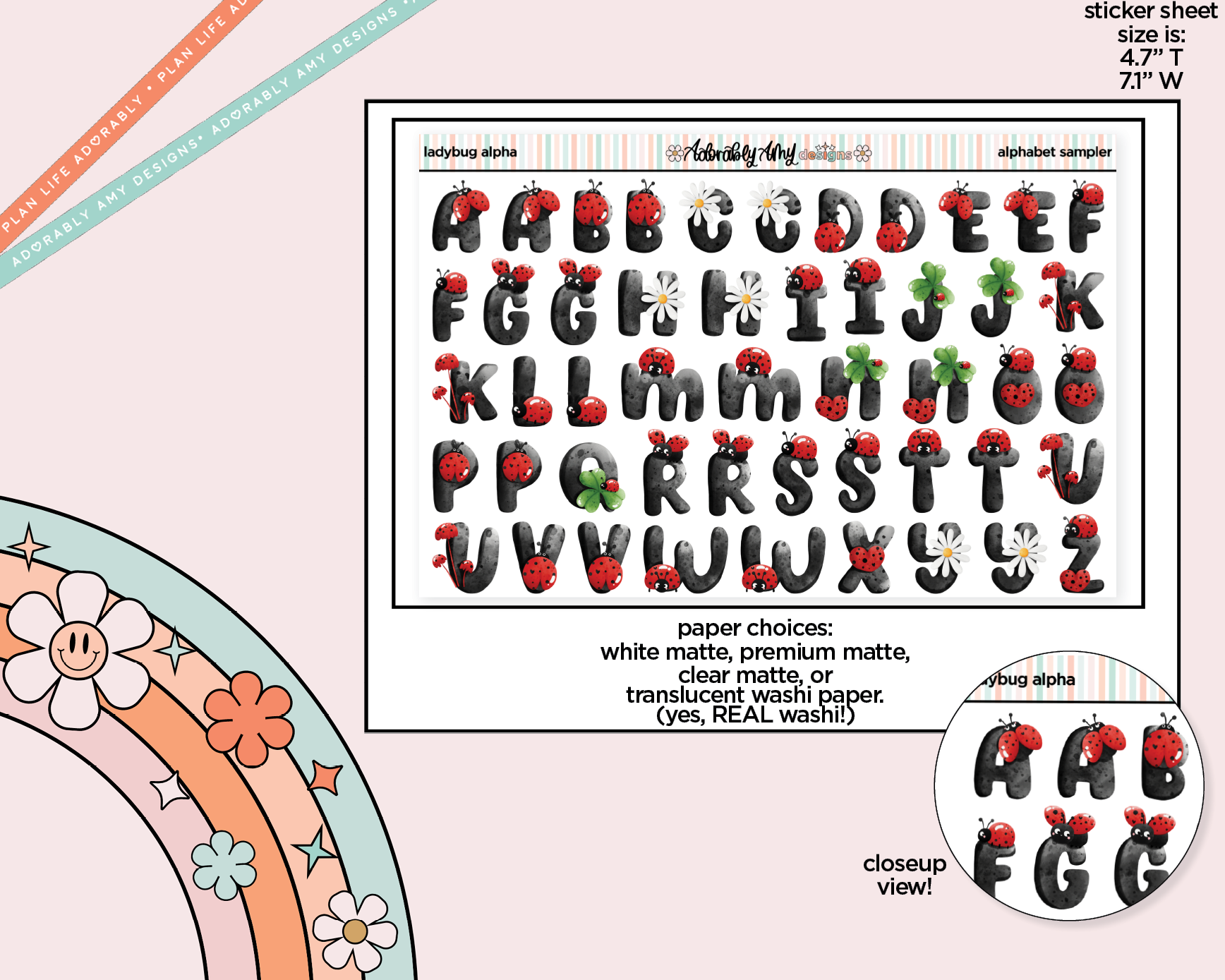 Ladybug Party Alphabet Stickers Deco Typography Sampler Planner Stickers