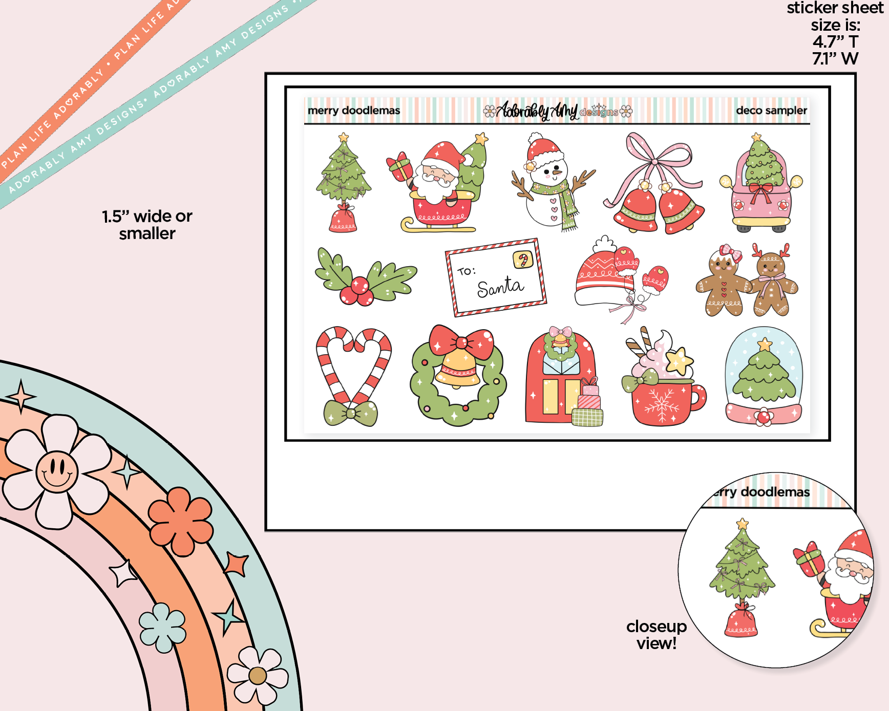 Merry Doodlemas Kawaii Decorative Planner Stickers