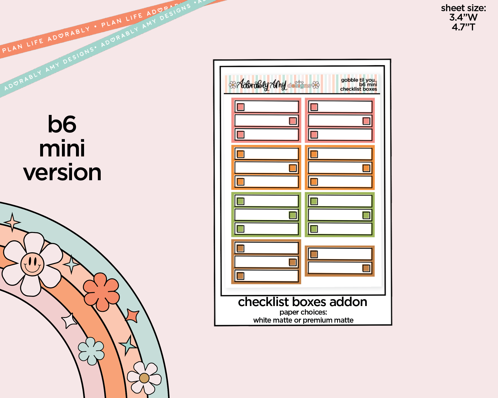 This Weekly Kit sized for B6 Planners, PP Weeks, PP B6 Weeks or any vertical style insert. The full boxes are approximately 1.14" tall so these can work in ANY smaller sized vertical insert. All the cute, just a little shorter!