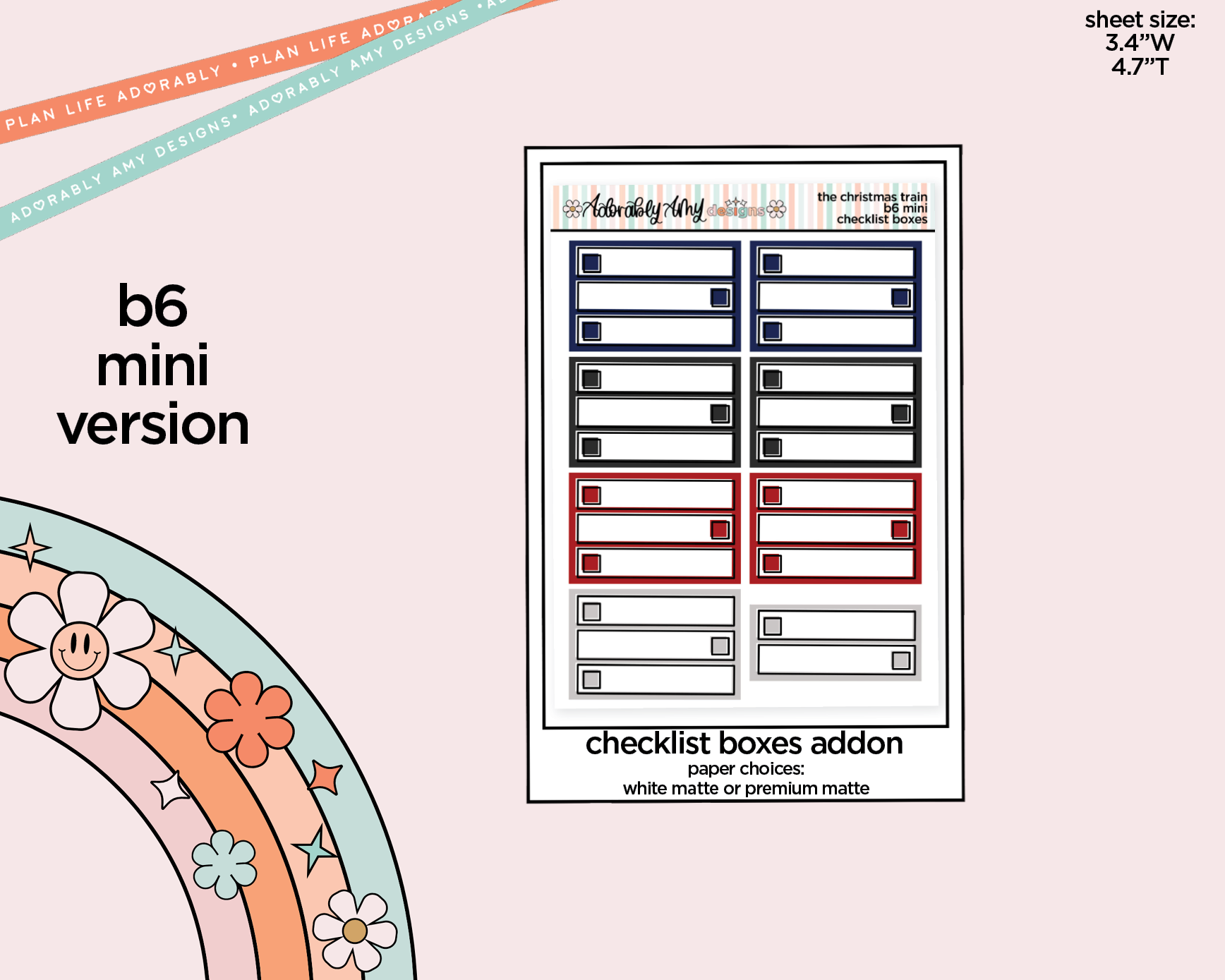 This Weekly Kit sized for B6 Planners, PP Weeks, PP B6 Weeks or any vertical style insert. The full boxes are approximately 1.14" tall so these can work in ANY smaller sized vertical insert. All the cute, just a little shorter!