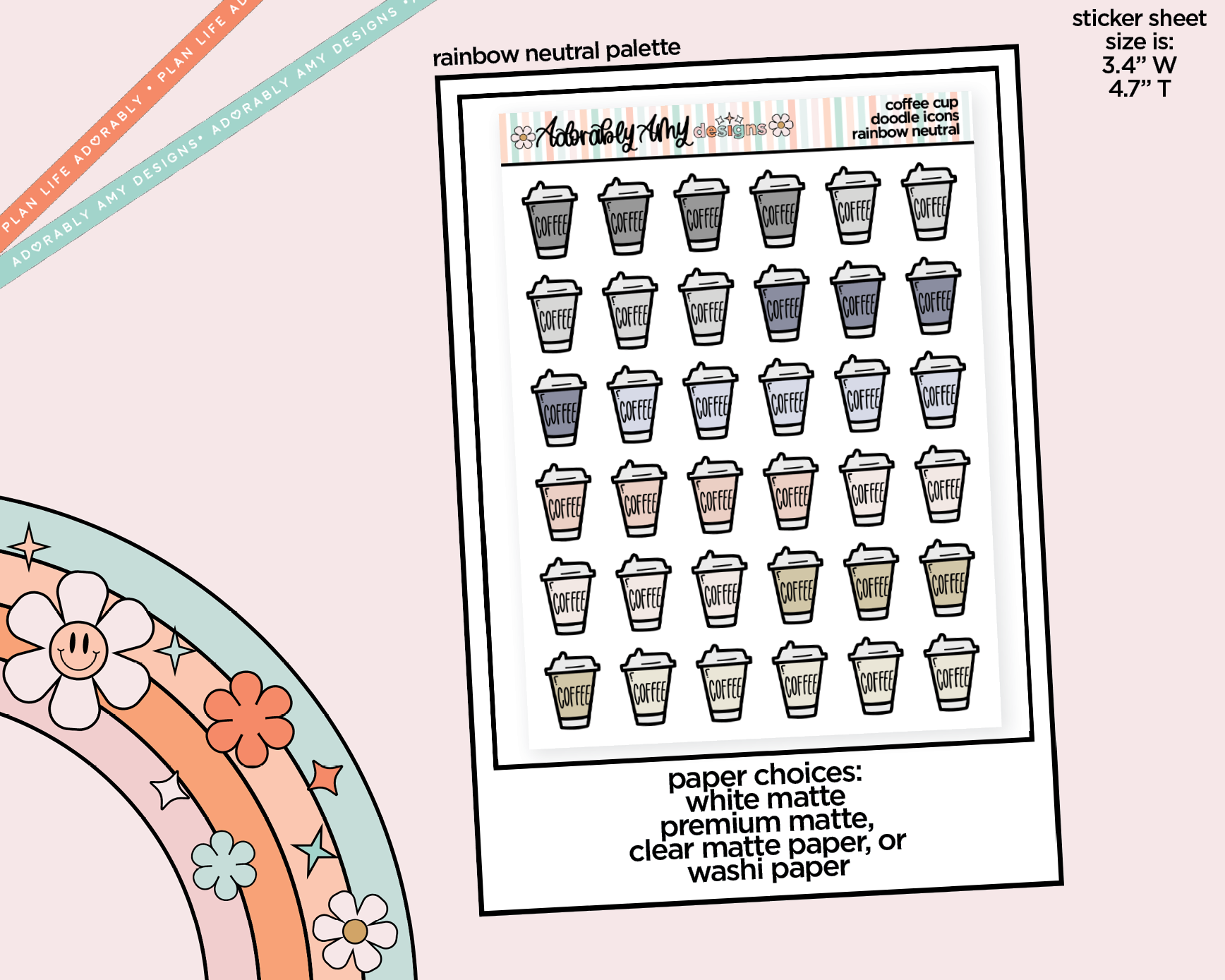 Rainbow Coffee Cups Doodled Stickers for any Planner or Insert