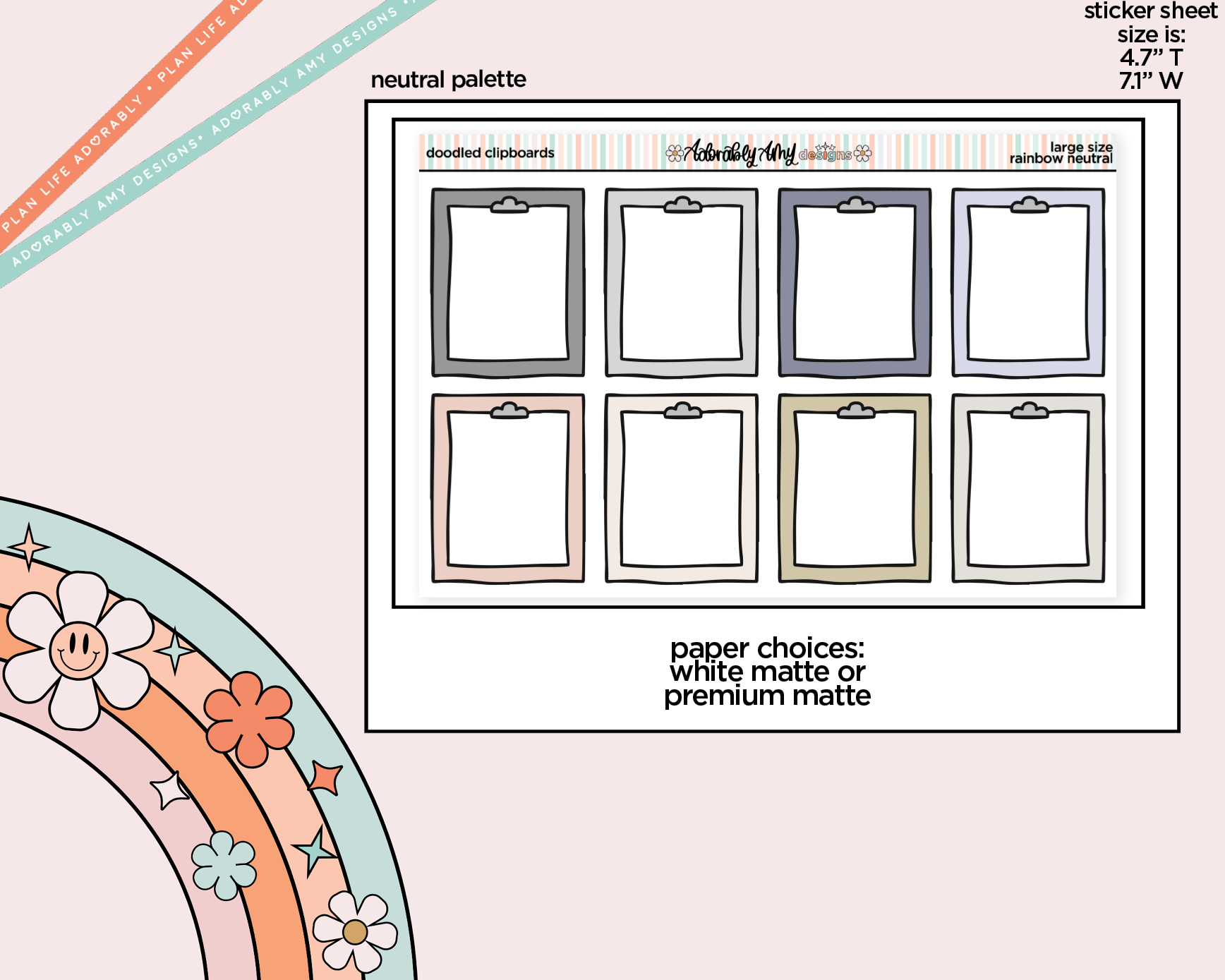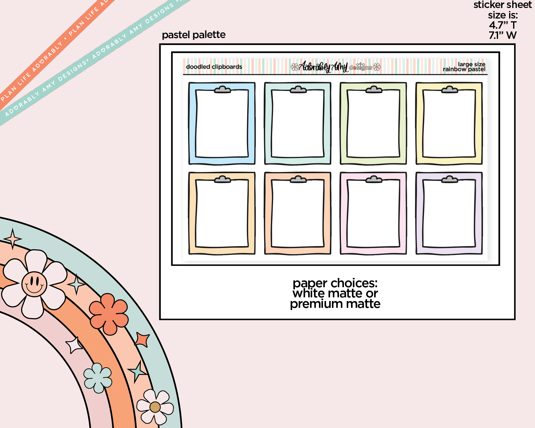 Rainbow Doodled Clipboard Boxes Large/Jumbo Size Stickers
