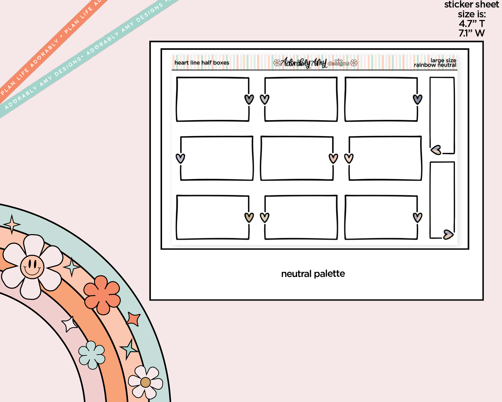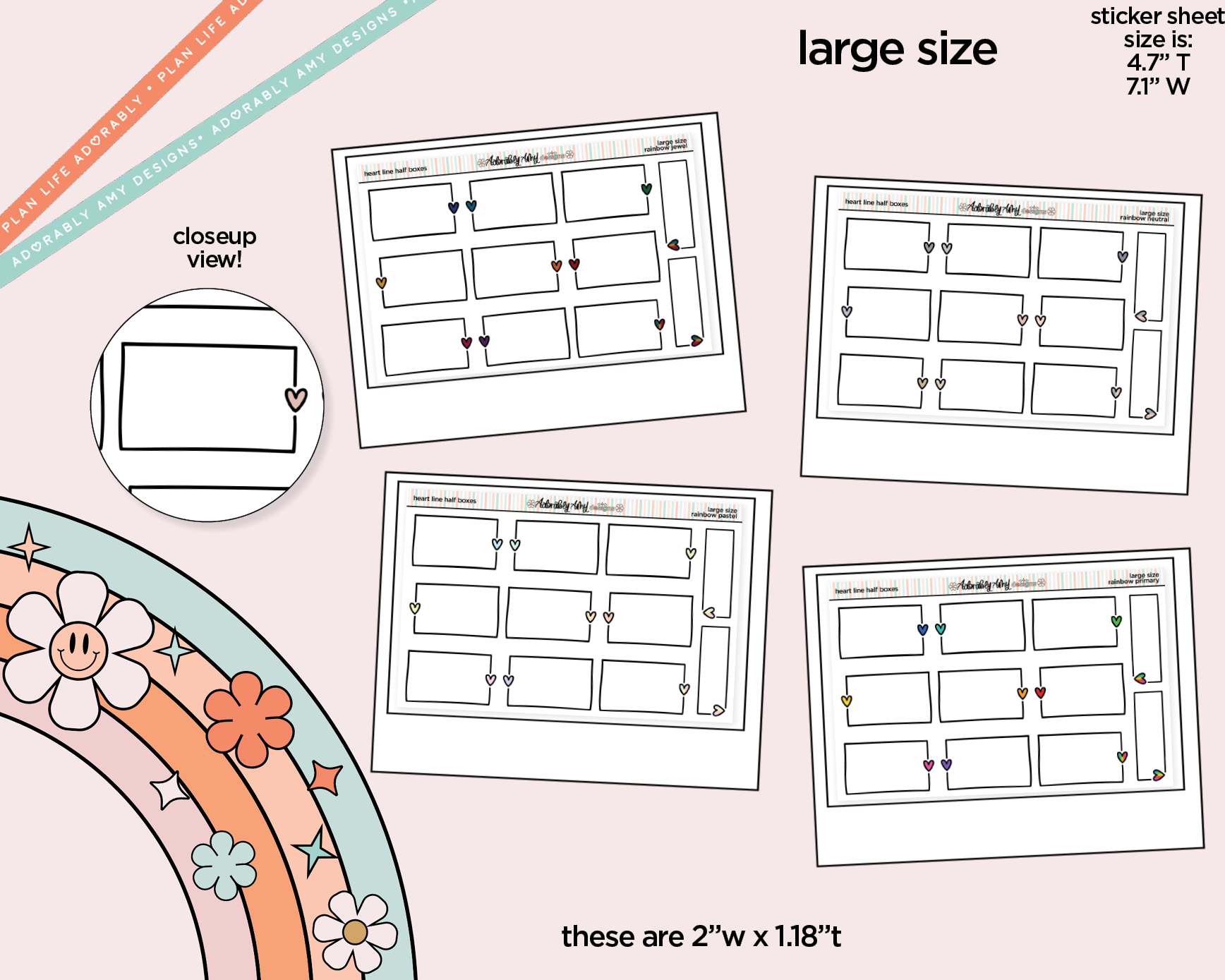 Rainbow Doodled Heart Line Half Boxes Large/Jumbo Size Stickers